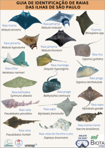 As raias estão entre os grupos de vertebrados mais ameaçados de extinção no planeta (36% das espécies), sendo alvos prioritários para ações de pesquisa e conservação. Um projeto de pesquisa vinculado ao Programa Biota/Fapesp busca mapear as ocorrências de raias a partir das observações realizadas por mergulhadores recreativos em três regiões do litoral de São Paulo: o Parque Estadual Marinho da Laje de Santos, o Refúgio de Vida Silvestre do Arquipélago de Alcatrazes e a Ilha da Queimada Grande, que pertence a APA Marinha do Litoral Centro. Um guia ilustrado das espécies de raias da região serve como base para a identificação correta de cada uma delas.